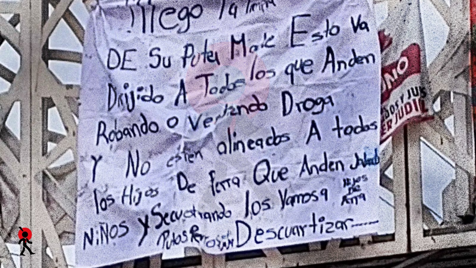 Vecinos que cruzaban la zona fueron los primeros en notar la lona. El desconcierto se esparció rápido: algunos grabaron videos, otros prefirieron apresurar el paso, y varios llamaron a las autoridades.