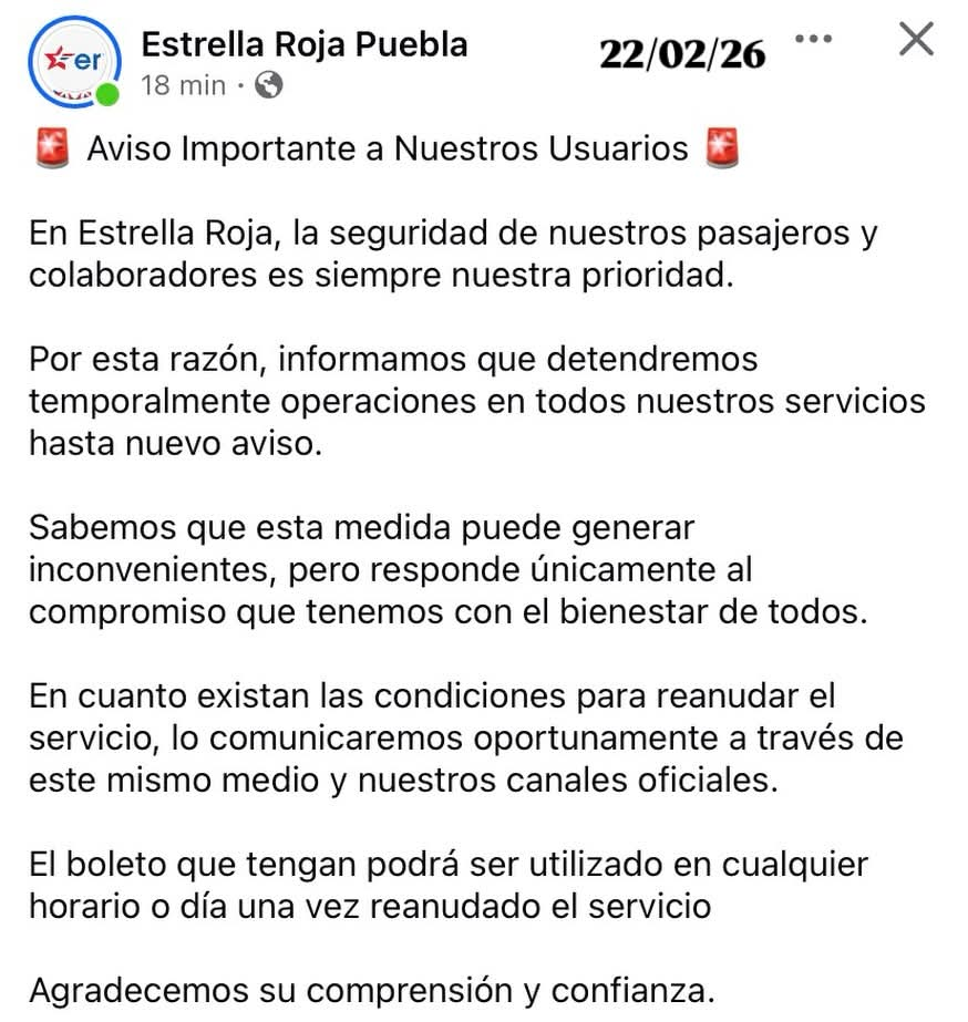 - Seguridad primero: Estrella Roja detiene servicios ante cierres en autopistas